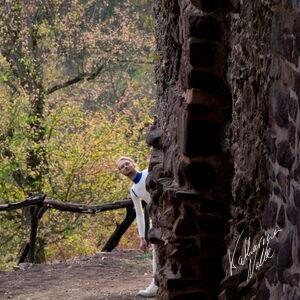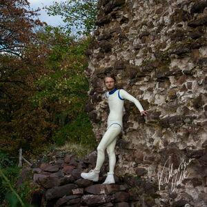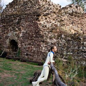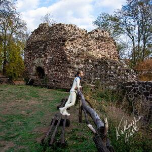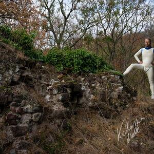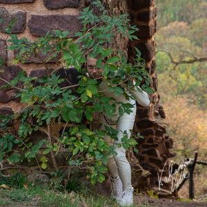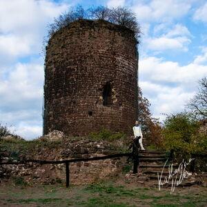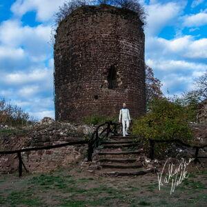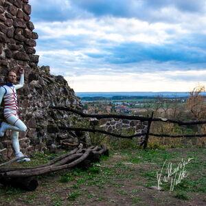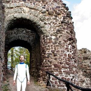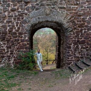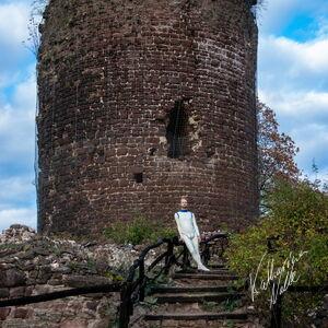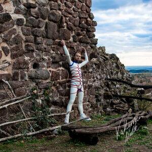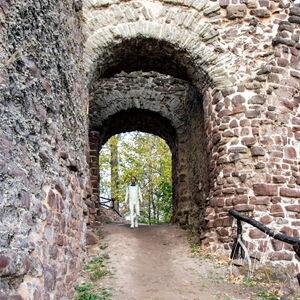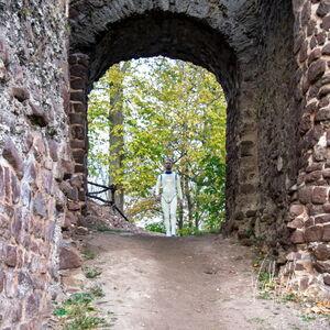 Steriles Latex umgeben von mittelalterlichen Ruinen. Die Ebersburg gab eine schöne Kulisse,.