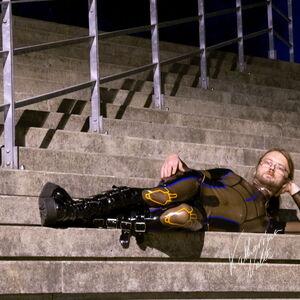 Mein für die Berlin-Urlaube gekaufter Tron-Suit inmitten einer Industrie-Ruine in Heringen. Das erste Shooting überhaupt.
